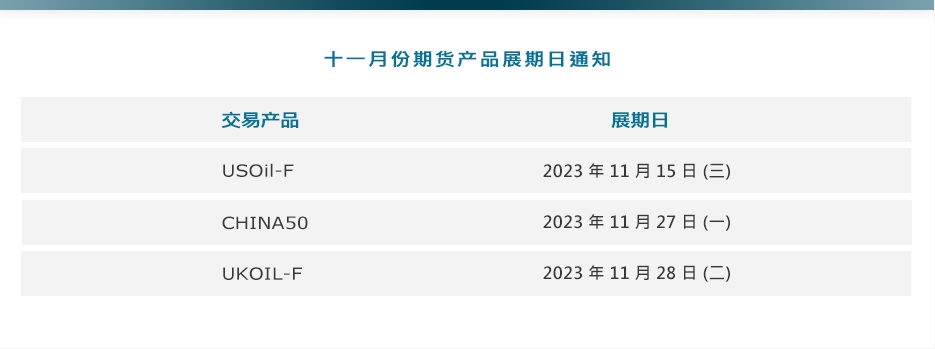 瑞德克斯提醒你,指数USOil-F、UKOil-F及期货产品CHINA50即将展期。