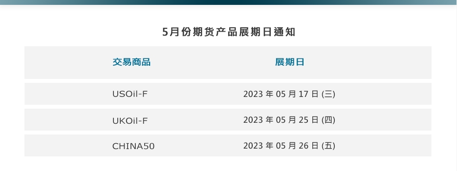 瑞德克斯提醒你,指数USOil-F、UKOil-F及期货产品CHINA50即将展期。