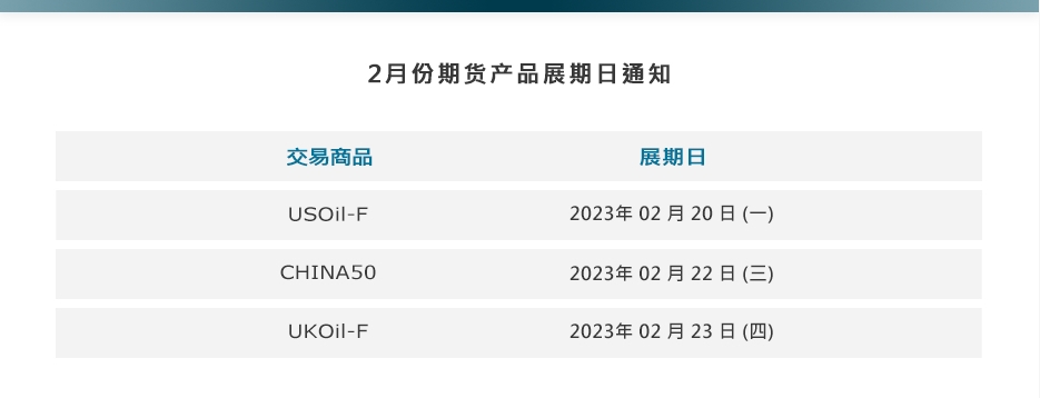 2月份期货产品展期日通知