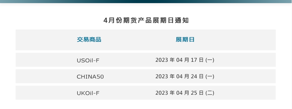 瑞德克斯提醒你,指数USOil-F、UKOil-F及期货产品CHINA50即将展期。