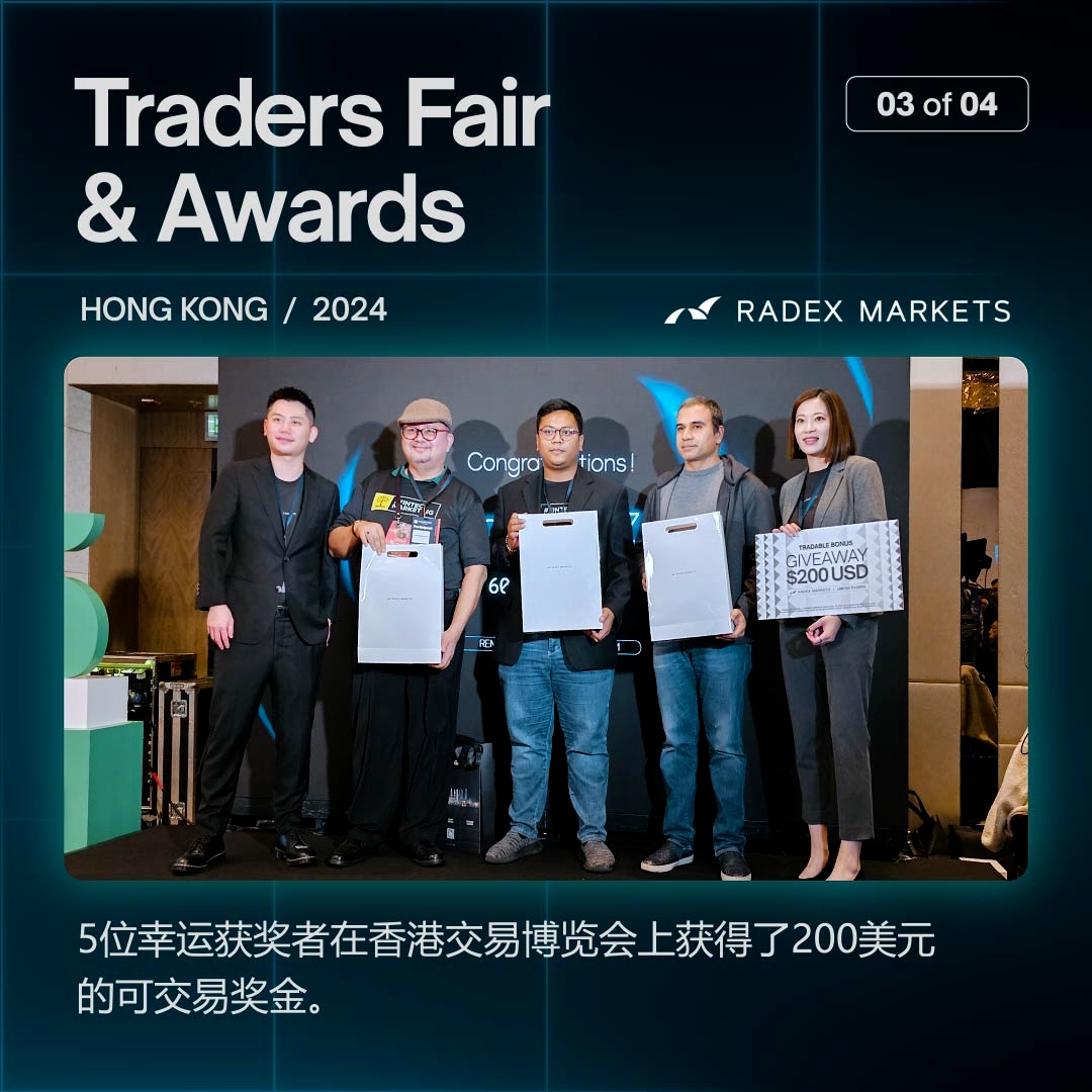 為了增添活動的趣味性,RADEX MARKETS舉辦幸運抽獎活動,向5位獲獎者頒發200美元的可交易獎金,讓他們無需注資就能體驗平台的交易環境。