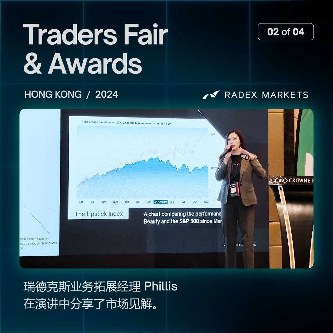 活動的一大亮點是 RADEX MARKETS 業務拓展經理 Phillis 的精彩演講,她以獨特的視角探討時尚與金融的關係,並以創新的方式解析市場趨勢,成功吸引了在場觀眾的注意。