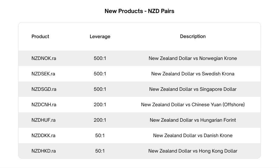 This expands our total offering from 49 FX pairs and 2 metals to a much broader range. All products are now live and available for clients to trade on MT5 Live accounts (please note: not available on MT5 Demo at this stage).