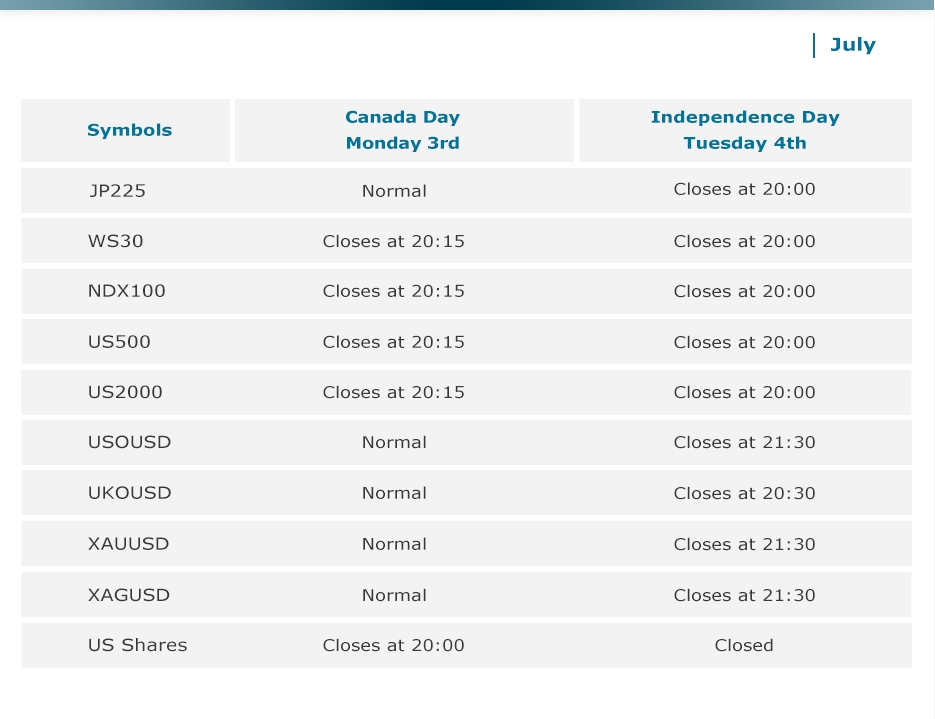 note that on Canada Day and Independence Day in July 2023, trading hours for
