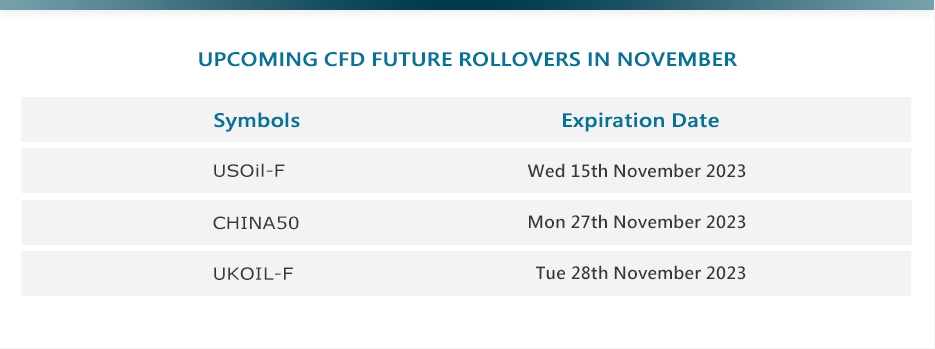 contracts, USOil-F, UKOil-F and CHINA50 will rollover on the following