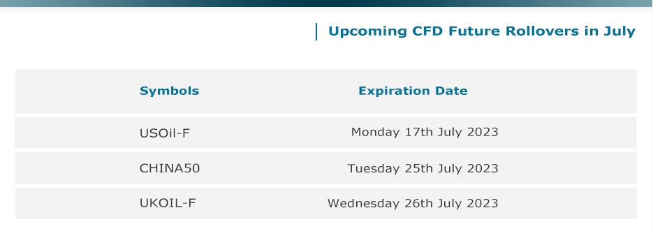 contracts, USOil-F, UKOil-F and CHINA50 will rollover on the following dates.